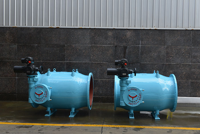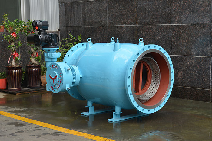活塞式調(diào)流調(diào)壓閥的調(diào)節(jié)主要是通過改變關(guān)閉件(活塞)與閥座密封面之間的介質(zhì)流通面積,從而達到調(diào)節(jié)流量(或壓力)之目的。 閥體設(shè)計為內(nèi)外圓筒式結(jié)構(gòu),使該閥之構(gòu)造更符合水流控制技術(shù)。調(diào)節(jié)機構(gòu)為曲柄滑塊機構(gòu),關(guān)閉件滑塊為圓筒形的活塞,可在闊體內(nèi)圓筒里由導(dǎo)軌引導(dǎo)沿管路中心軸向運動,因而改變流通面積,以實現(xiàn)控制調(diào)節(jié)功能。閥體內(nèi)腔為流線形中心軸對稱流道,使流體在閥體內(nèi)被很好地引導(dǎo),水阻小,水頭損失低。閥腔內(nèi)任何位置水流橫斷面均為環(huán)狀。任何位置活塞的環(huán)形節(jié)流面,確保該閥線性操作特性。曲柄滑塊機構(gòu)操作穩(wěn)定可靠,輸出扭矩恒定,關(guān)閉先快后慢,因而不產(chǎn)生任何水錘。