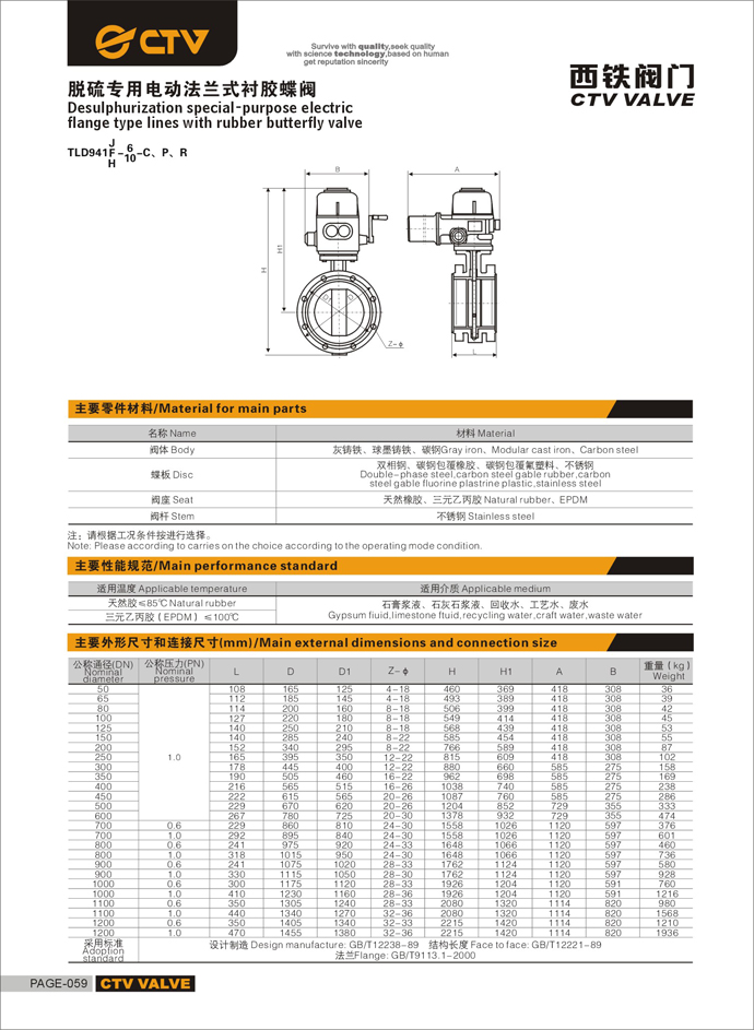 脫硫專用電動法蘭式襯膠蝶閥
