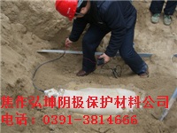 關于陽極的埋設要求如下:按比例配制、調勻好填料,裝入φ300×1000的棉或麻布袋中,將經過用鐵砂紙打光及表面清潔處理的陽極及時插人填料*位置,并壓實;包外用鐵線纏繞綁實平臥或豎直埋設在管道側邊的2-3M處,埋深應與管道埋深相同,并要在冰凍線以下,用細原土摻鹽分層澆水濕潤后回填混凝土。